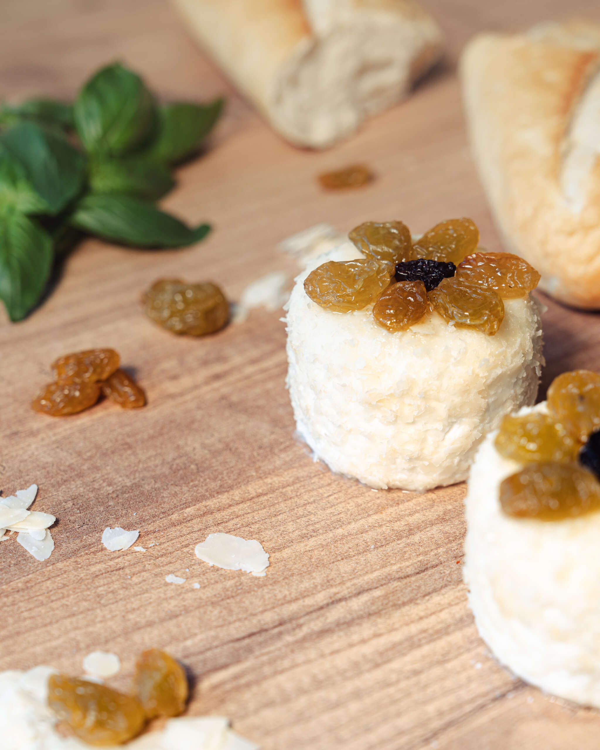 Hou je van zoet in combinatie met geitenkaas? Dan is dit kaasje een echte aanrader. Deze Crottin wordt omhuld met amandelschilfers, afgewerkt met een honingtopping en rozijnen.